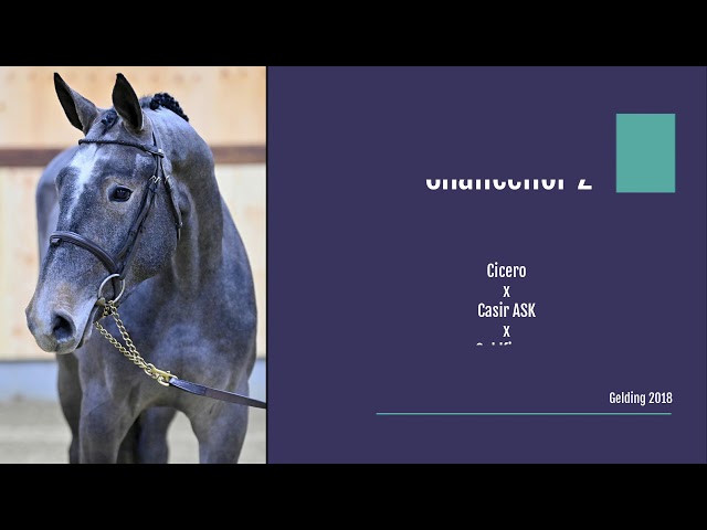 Chancellor Z is a son of Cicero Z. Cicero Z has already ranked for years with the most influential stud stallions in the world. His dam jumped successful at 1.40 level. Further in the damline we can find the 1.60 horse Midt Jutland (Rein Pill) and the 1.50 horse Candy K.